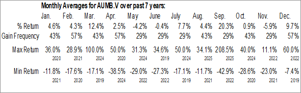 To download AUMB.V seasonal chart data, please log in or Subscribe.