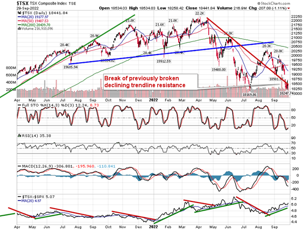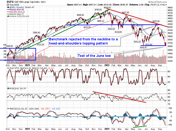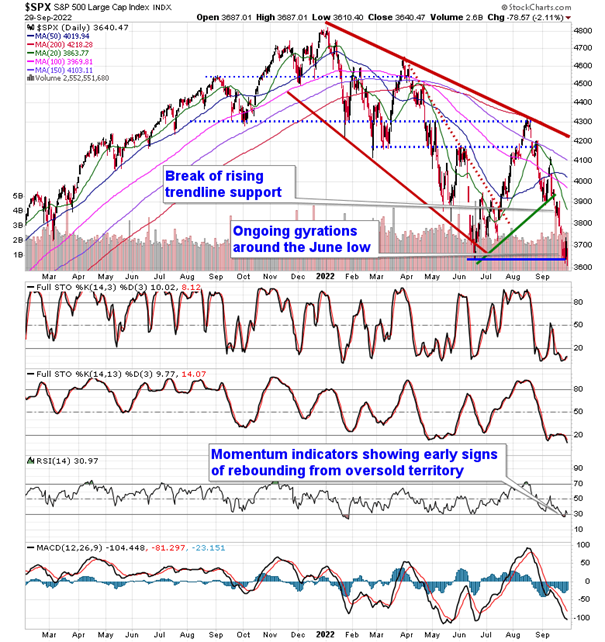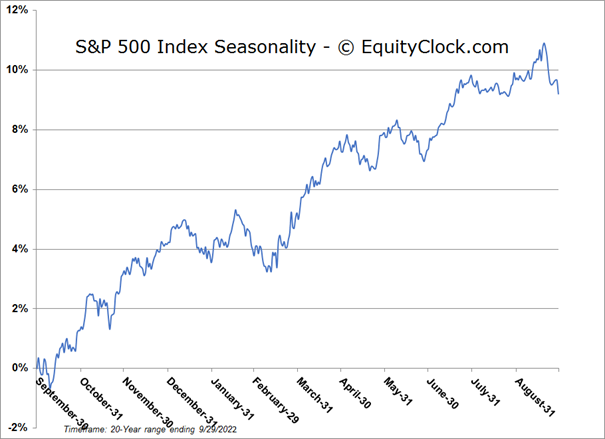 Equity markets remained on edge on Thursday as the euphoria surrounding the bond market rebound on Wednesday was short-lived. The S&P 500 Index slipped back to the lows of the year, falling by 2.11% to close within mere points of the June intraday low at 3636. The relative strength Index (RSI) briefly slipped back into oversold territory below 30, although early indications remain that momentum indicators are bottoming. The MACD histogram has started to narrow as the spread between the technical indicator and the signal line converges on one another. Major moving averages continue to roll over, providing levels of resistance over multiple timeframes that warrant selling into. Despite the break of the June lows, we are still on the lookout for evidence of a shift of the intermediate-term trend, as naive as that may sound given the overwhelming negativity in the market, but waiting for that turn in order to ramp up equity exposure for the traditional seasonal strength that spans the last couple of months of the year remains prudent.We have ample cash/bonds in our Super Simple Seasonal Portfolio and in the Seasonal Advantage Portfolio that we manage on behalf of clients in partnership with Castlemoore, but we are anxious to put this cash hoard to work in stocks given the extremes that many market metrics are flashing. Theoretically, we are near that turning point, particularly as we enter the new month and quarter, but we can’t rely solely on theory or what is normal in what is clearly an abnormal fundamental backdrop with the Fed showing its greatest aggression in decades. This market is in desperate need of a sentiment refresh.