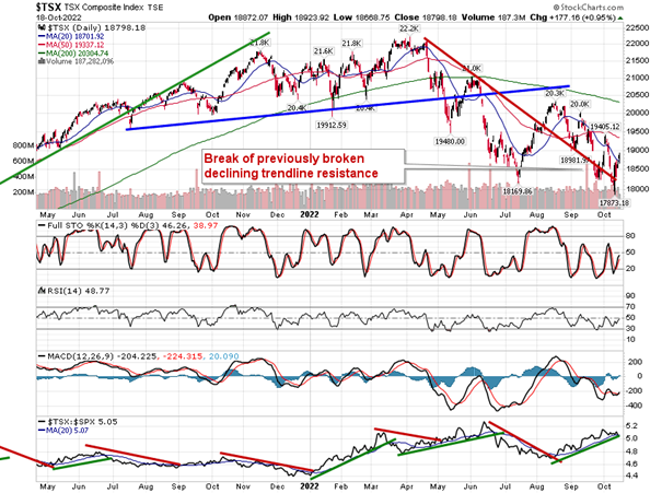 Stocks closed mildly higher on Tuesday as the market continues to square away negative bets within portfolios amidst the start of the third quarter earnings season. The S&P 500 Index gained just over one percent, closing above its 20-day moving average for the first time since August. An upside gap charted after the open at 3700 was quickly filled, but indications of support at this short-term hurdle remain. Momentum indicators continues to push higher, keeping positive divergences compared to price intact and signalling waning selling pressures around what has been a highly pivotal level at the June low of 3636. The next hurdle beyond now broken resistance at the 20-day moving average is the 50-day, now at 3915, presenting the logical level to test on this rebound attempt. However, so long as major moving averages, such as the 50-day, are pointed lower, using the barrier as a level to sell into in order to lighten up on equity exposure is seen as appropriate until the trajectory of the paths shift back positive.