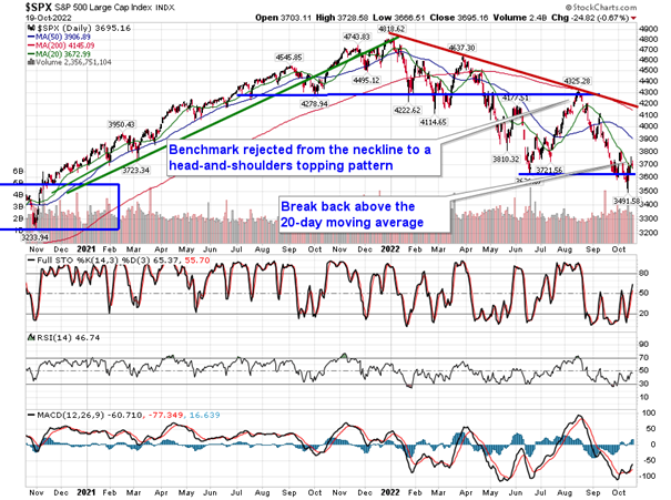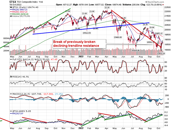Stocks slipped on Wednesday as rising rates and a stronger dollar kept the market under pressure. The S&P 500 Index shed two-thirds of one percent, charting a rather indecisive doji candlestick around the recently broken 20-day moving average at 3672. Momentum indicators continue to point higher with both RSI and MACD positively diverging from price over the past few weeks, signalling waning selling pressures. The 50-day moving average overhead around 3900 continues to be viewed as the logical test within the context of a market that is still showing an intermediate-term trend of lower-lows and lower-highs. Using the hurdle as a point to sell into in order to alleviate equity exposure continues to be seen as appropriate until such point as the direction of this variable hurdle curls back higher. By the end of the year, however, we are looking at the prospect of an overshoot of the 50-day towards declining trendline resistance below 4200, but we will take things one step at a time.