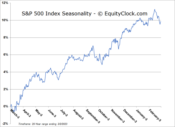 Stocks bounced higher on Thursday as investors shook off concerns pertaining to rising rates and instead focussed on levels of support below the market, such as the 200-day moving average for the S&P 500 Index. The large-cap benchmark gained just over three-quarters of one percent, charting an outside reversal candlestick around the important long-term support at the 200-day. The index closed at its 50-day moving average, highlighting this recent battle between these two variable hurdles as the bulls and the bears battle for the intermediate to long-term direction of the market. While the outside reversal candlestick provides a sign of resilience around the 200-day, follow through to the upside from Thursday’s action is still required to confirm that the bulls have the upper hand, able support the still rising intermediate path of higher-highs and higher-lows stemming from the October bottom. Momentum indicators are showing earning signs of curling higher as short-term downside pressures fade. Seasonally, a low early to mid March has been the norm over the past two decades, followed by strength that carries stocks higher into the spring.