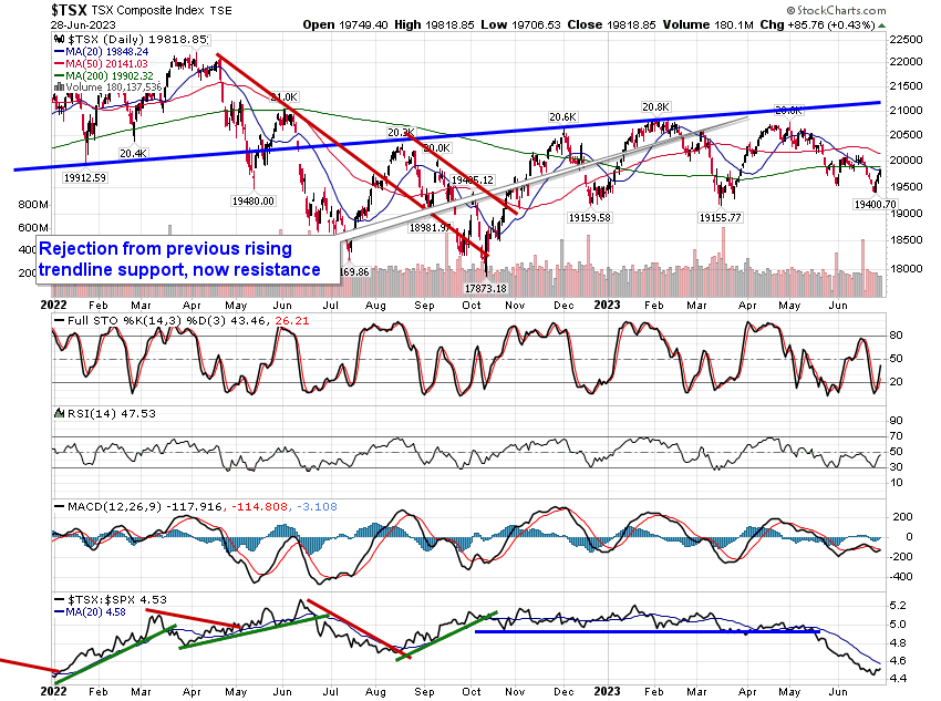Stocks traded mixed on Wednesday as portfolio managers continue to execute incremental allocation changes ahead of the end of the quarter.  The S&P 500 Index closed almost flat (down by 0.04%), remaining supported by the rising 20-day moving average.  Momentum indicators continue to portray characteristics of a bullish trend above their middle lines and the alleviation of overbought conditions charted in recent weeks provides the leeway for the summer rally period through the middle of July to excel now that the exhaustive state has been removed.  The intermediate-term trend remains that of higher-highs and higher-lows, supported by major moving averages, and this is not expected to change in the weeks ahead, which is typically one of the stronger periods for the equity market.  As highlighted yesterday and will be contended in our soon to be released monthly outlook for July, the breakout of the approximately 400-point range between 3800 and 4200 has a calculated upside target towards 4600, a target that could easily be achieved during the bullish fluctuation that is normal through the first three weeks of July. The technicals are not providing much for the bears to feed off of, which warrants an upbeat view of stocks at least for the next few weeks, despite fundamental concerns pertaining to the economy that are ongoing.