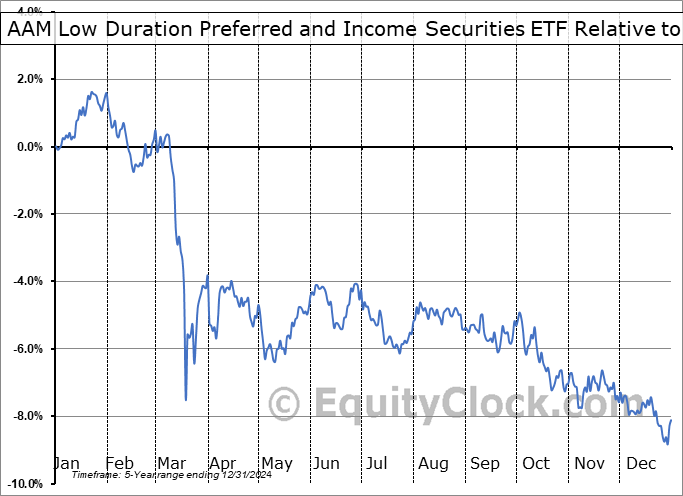 Analysis of the AAM Low Duration Preferred and Income Securities ETF (AMEX:PFLD) seasonal charts above shows that a Buy Date of July 14 and a Sell Date of October 3 has resulted in a geometric average return of 1.13% above the benchmark rate of the S&P 500 Total Return Index over the past 5 years. This seasonal timeframe has shown positive results compared to the benchmark in 5 of those periods. This is an excellent rate of success and the return strongly outperforms the relative buy-and-hold performance of the stock over the past 5 years by an average of 12.7% per year.