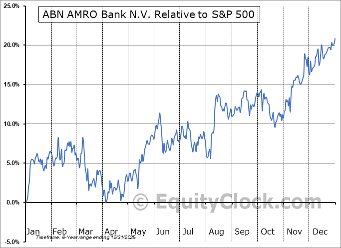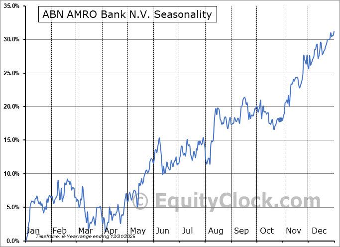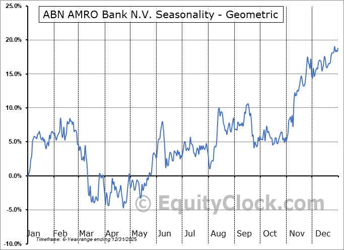 Analysis of the ABN AMRO Bank N.V. (OTCMKT:AAVMY) seasonal charts above shows that a Buy Date of November 8 and a Sell Date of January 31 has resulted in a geometric average return of 11.36% above the benchmark rate of the S&P 500 Total Return Index over the past 5 years. This seasonal timeframe has shown positive results compared to the benchmark in 4 of those periods. This is a very good rate of success and the return strongly outperforms the relative buy-and-hold performance of the stock over the past 5 years by an average of 21.24% per year.