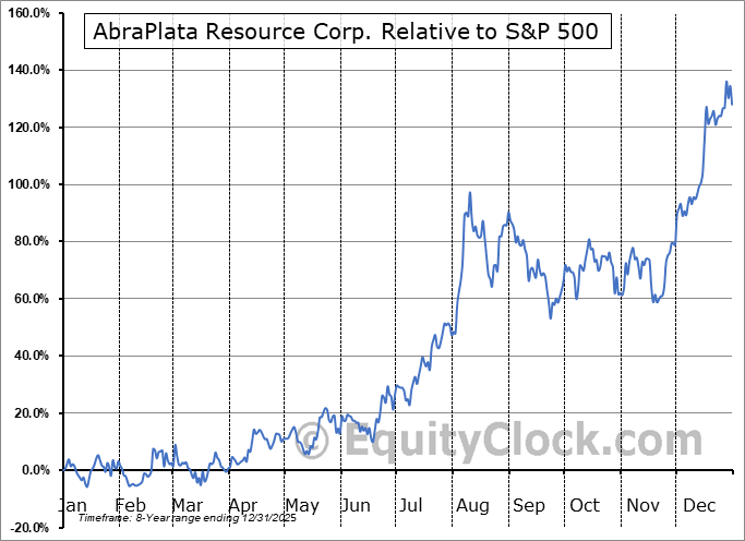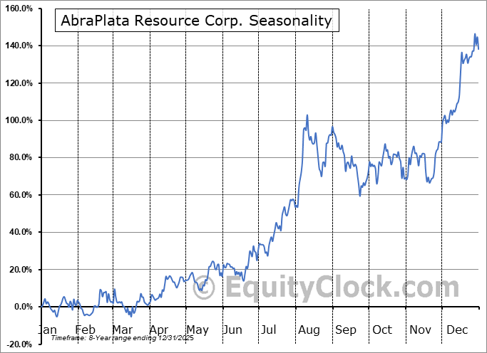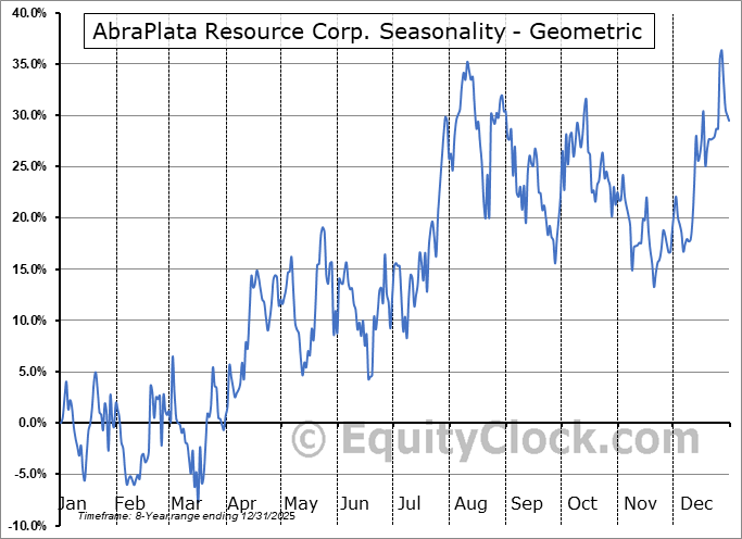 Analysis of the AbraPlata Resource Corp. (OTCMKT:ABBRF) seasonal charts above shows that a Buy Date of February 6 and a Sell Date of May 6 has resulted in a geometric average return of 25.36% above the benchmark rate of the S&P 500 Total Return Index over the past 8 years. This seasonal timeframe has shown positive results compared to the benchmark in 8 of those periods. This is an excellent rate of success and the return strongly outperforms the relative buy-and-hold performance of the stock over the past 8 years by an average of 13.13% per year.