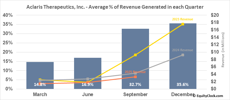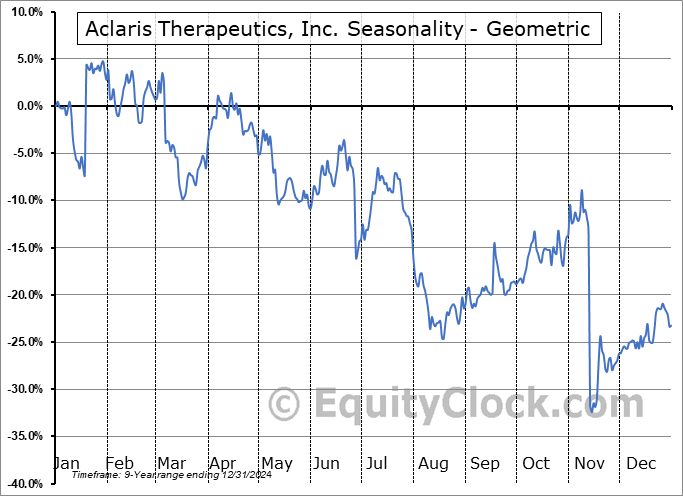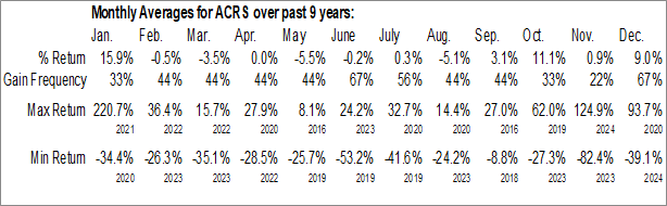 A word of caution: Only 9 years of data is available for shares of ACRS, perhaps insufficient to create a seasonal profile that accurately gauges the seasonal tendencies influencing the investment. Ideally, while 20 years is preferred, at least 10 years of data is required to perform a seasonal analysis that is considered to be reliable for future seasonal periods.