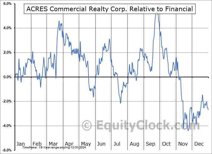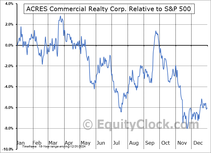 Analysis of the ACRES Commercial Realty Corp. (NYSE:ACR) seasonal charts above shows that a Buy Date of October 20 and a Sell Date of February 3 has resulted in a geometric average return of 1.38% above the benchmark rate of the S&P 500 Total Return Index over the past 18 years. This seasonal timeframe has shown positive results compared to the benchmark in 13 of those periods. This is a good rate of success and the return strongly outperforms the relative buy-and-hold performance of the stock over the past 18 years by an average of 14.67% per year.