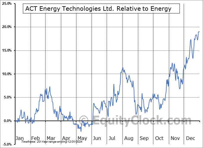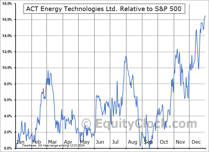 Analysis of the ACT Energy Technologies Ltd. (TSE:ACX.TO) seasonal charts above shows that a Buy Date of October 4 and a Sell Date of January 13 has resulted in a geometric average return of 5.86% above the benchmark rate of the S&P 500 Total Return Index over the past 20 years. This seasonal timeframe has shown positive results compared to the benchmark in 14 of those periods. This is a good rate of success and the return strongly outperforms the relative buy-and-hold performance of the stock over the past 20 years by an average of 17.79% per year.