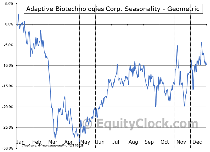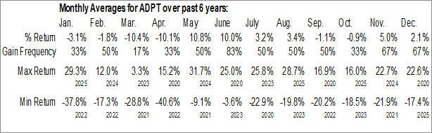 A word of caution: Only 6 years of data is available for shares of ADPT, perhaps insufficient to create a seasonal profile that accurately gauges the seasonal tendencies influencing the investment. Ideally, while 20 years is preferred, at least 10 years of data is required to perform a seasonal analysis that is considered to be reliable for future seasonal periods.