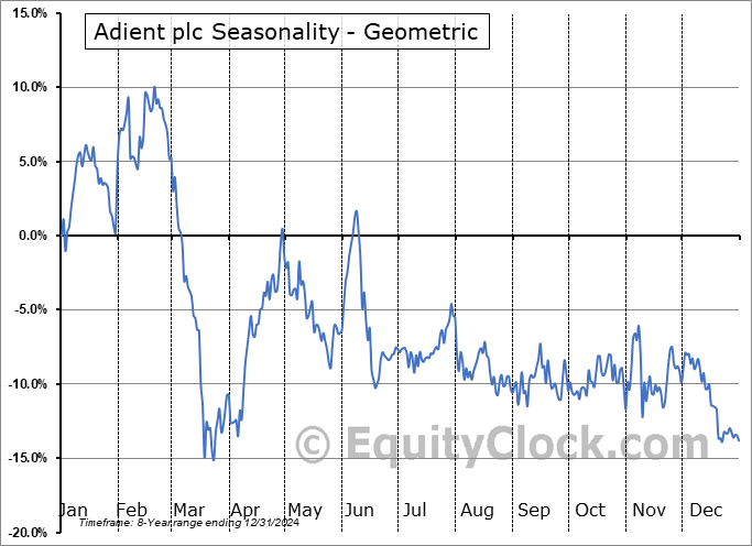 A word of caution: Only 8 years of data is available for shares of ADNT, perhaps insufficient to create a seasonal profile that accurately gauges the seasonal tendencies influencing the investment. Ideally, while 20 years is preferred, at least 10 years of data is required to perform a seasonal analysis that is considered to be reliable for future seasonal periods.