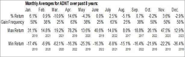 To download ADNT seasonal chart data, please log in or Subscribe.