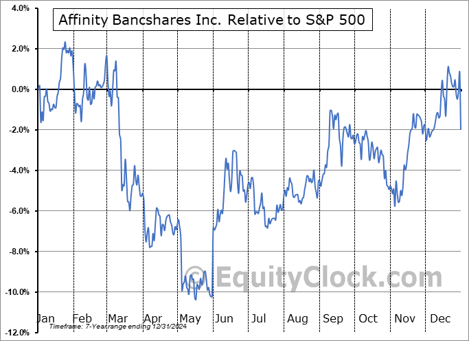 Analysis of the Affinity Bancshares Inc. (NASD:AFBI) seasonal charts above shows that a Buy Date of August 29 and a Sell Date of December 20 has resulted in a geometric average return of 9.26% above the benchmark rate of the S&P 500 Total Return Index over the past 7 years. This seasonal timeframe has shown positive results compared to the benchmark in 6 of those periods. This is a very good rate of success and the return strongly outperforms the relative buy-and-hold performance of the stock over the past 7 years by an average of 16.04% per year.
