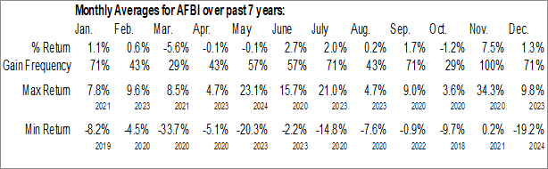 A word of caution: Only 7 years of data is available for shares of AFBI, perhaps insufficient to create a seasonal profile that accurately gauges the seasonal tendencies influencing the investment. Ideally, while 20 years is preferred, at least 10 years of data is required to perform a seasonal analysis that is considered to be reliable for future seasonal periods.