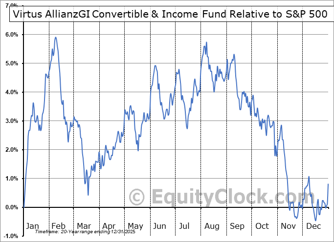 Analysis of the Virtus AllianzGI Convertible & Income Fund (NYSE:NCV) seasonal charts above shows that a Buy Date of December 15 and a Sell Date of March 4 has resulted in a geometric average return of 4.07% above the benchmark rate of the S&P 500 Total Return Index over the past 20 years. This seasonal timeframe has shown positive results compared to the benchmark in 16 of those periods. This is a very good rate of success and the return strongly outperforms the relative buy-and-hold performance of the stock over the past 20 years by an average of 9.66% per year.