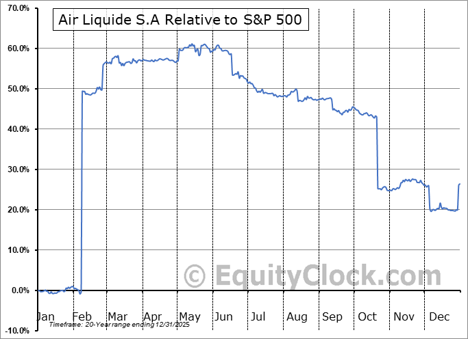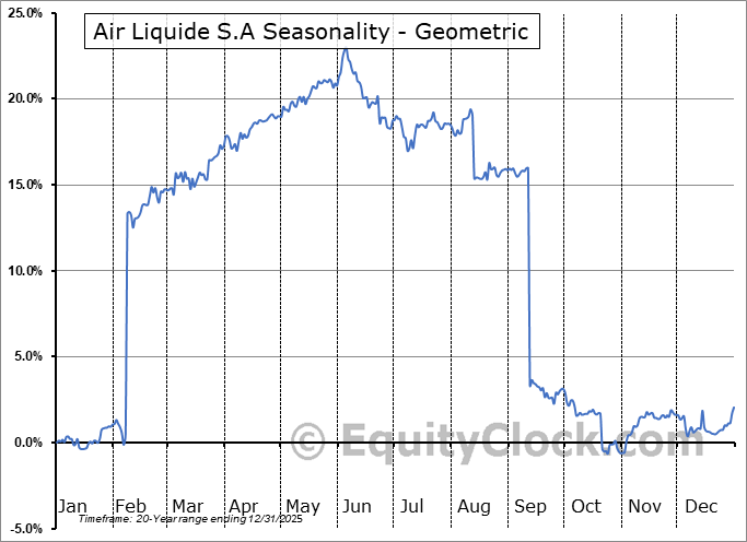 Analysis of the Air Liquide S.A (OTCMKT:AIQUF) seasonal charts above shows that a Buy Date of February 15 and a Sell Date of June 5 has resulted in a geometric average return of 5.64% above the benchmark rate of the S&P 500 Total Return Index over the past 20 years. This seasonal timeframe has shown positive results compared to the benchmark in 16 of those periods. This is a very good rate of success and the return strongly outperforms the relative buy-and-hold performance of the stock over the past 20 years by an average of 13.49% per year.