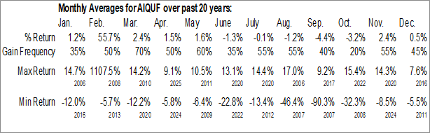 Air Liquide S.A (OTCMKT:AIQUF) Seasonal Chart