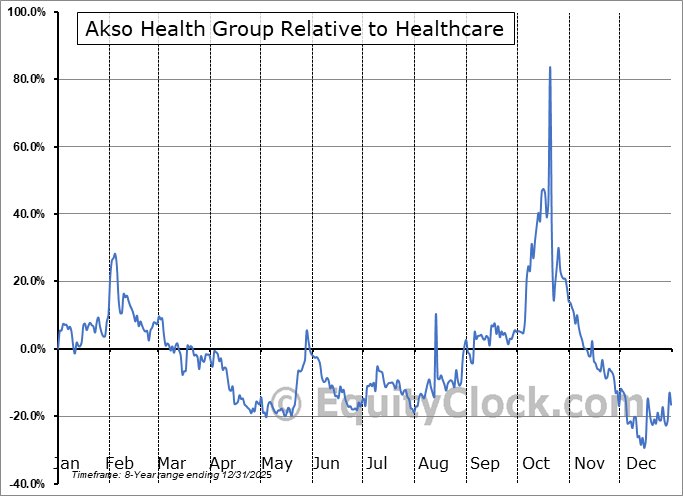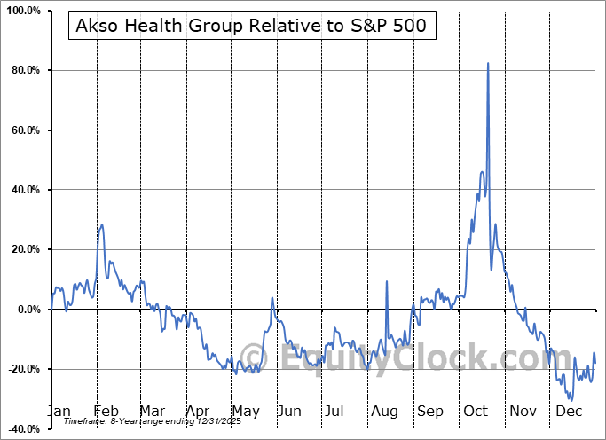 Analysis of the Akso Health Group (NASD:AHG) seasonal charts above shows that a Buy Date of May 19 and a Sell Date of August 31 has resulted in a geometric average return of 16.73% above the benchmark rate of the S&P 500 Total Return Index over the past 8 years. This seasonal timeframe has shown positive results compared to the benchmark in 6 of those periods. This is a good rate of success and the return strongly outperforms the relative buy-and-hold performance of the stock over the past 8 years by an average of 56.42% per year.