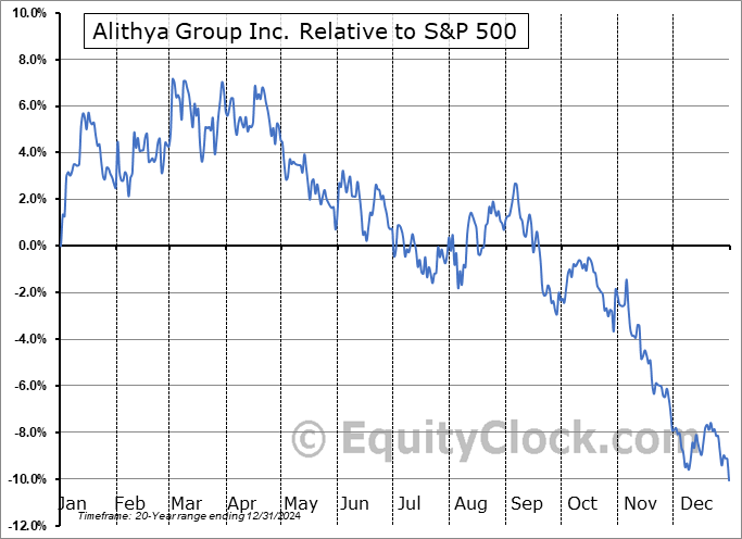 Analysis of the Alithya Group Inc. (OTCMKT:ALYAF) seasonal charts above shows that a Buy Date of December 9 and a Sell Date of March 4 has resulted in a geometric average return of 4.75% above the benchmark rate of the S&P 500 Total Return Index over the past 20 years. This seasonal timeframe has shown positive results compared to the benchmark in 14 of those periods. This is a good rate of success and the return strongly outperforms the relative buy-and-hold performance of the stock over the past 20 years by an average of 19.88% per year.