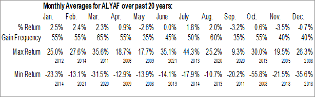 Alithya Group Inc. (OTCMKT:ALYAF) Seasonal Chart
