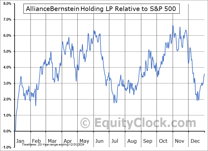 Analysis of the AllianceBernstein Holding LP (NYSE:AB) seasonal charts above shows that a Buy Date of December 20 and a Sell Date of March 10 has resulted in a geometric average return of 4.91% above the benchmark rate of the S&P 500 Total Return Index over the past 20 years. This seasonal timeframe has shown positive results compared to the benchmark in 15 of those periods. This is a good rate of success and the return strongly outperforms the relative buy-and-hold performance of the stock over the past 20 years by an average of 7.64% per year.