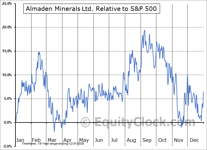 Analysis of the Almaden Minerals Ltd. (OTCMKT:AAUAF) seasonal charts above shows that a Buy Date of November 27 and a Sell Date of February 15 has resulted in a geometric average return of 6.57% above the benchmark rate of the S&P 500 Total Return Index over the past 18 years. This seasonal timeframe has shown positive results compared to the benchmark in 11 of those periods. This is a fair rate of success and the return strongly outperforms the relative buy-and-hold performance of the stock over the past 18 years by an average of 35.39% per year.