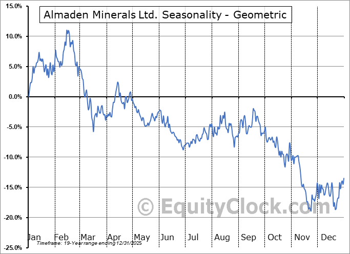 Almaden Minerals Ltd. (OTCMKT:AAUAF) Seasonal Chart