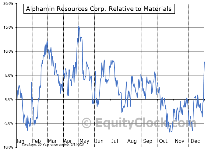 Analysis of the Alphamin Resources Corp. (TSXV:AFM.V) seasonal charts above shows that a Buy Date of December 8 and a Sell Date of February 27 has resulted in a geometric average return of 26% above the benchmark rate of the S&P 500 Total Return Index over the past 20 years. This seasonal timeframe has shown positive results compared to the benchmark in 16 of those periods. This is a very good rate of success and the return strongly outperforms the relative buy-and-hold performance of the stock over the past 20 years by an average of 36.02% per year.