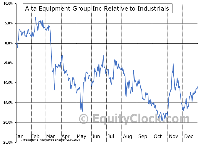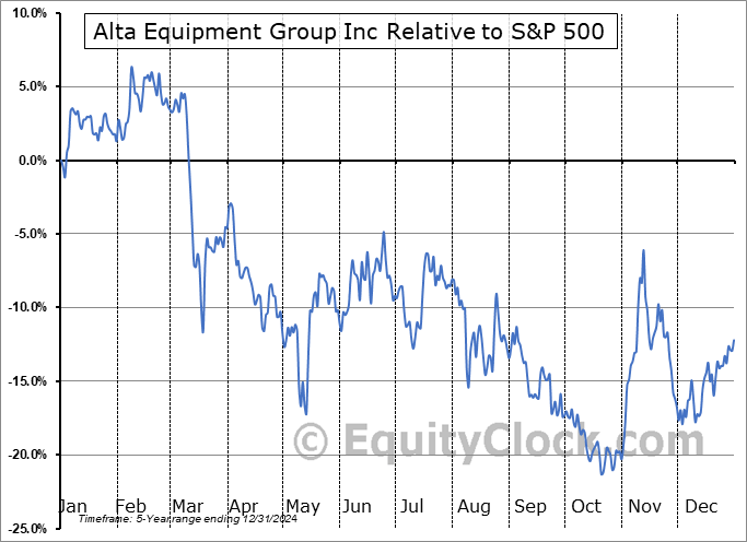 Analysis of the Alta Equipment Group Inc (NYSE:ALTG) seasonal charts above shows that a Buy Date of December 3 and a Sell Date of February 21 has resulted in a geometric average return of 10.36% above the benchmark rate of the S&P 500 Total Return Index over the past 5 years. This seasonal timeframe has shown positive results compared to the benchmark in 4 of those periods. This is a very good rate of success and the return strongly outperforms the relative buy-and-hold performance of the stock over the past 5 years by an average of 29.33% per year.