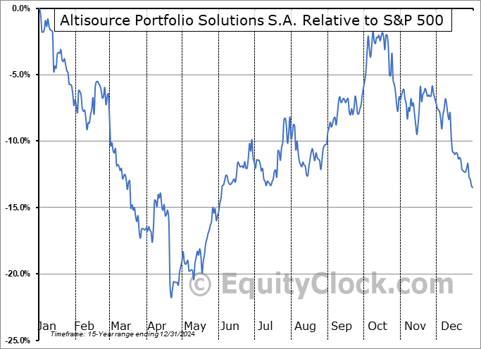 Analysis of the Altisource Portfolio Solutions S.A. (NASD:ASPS) seasonal charts above shows that a Buy Date of April 23 and a Sell Date of July 26 has resulted in a geometric average return of 16.8% above the benchmark rate of the S&P 500 Total Return Index over the past 15 years. This seasonal timeframe has shown positive results compared to the benchmark in 12 of those periods. This is a very good rate of success and the return strongly outperforms the relative buy-and-hold performance of the stock over the past 15 years by an average of 46.85% per year.