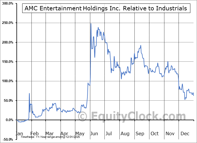 Analysis of the AMC Entertainment Holdings Inc. (NYSE:AMC) seasonal charts above shows that a Buy Date of May 25 and a Sell Date of August 13 has resulted in a geometric average return of 6.79% above the benchmark rate of the S&P 500 Total Return Index over the past 11 years. This seasonal timeframe has shown positive results compared to the benchmark in 8 of those periods. This is a good rate of success and the return strongly outperforms the relative buy-and-hold performance of the stock over the past 11 years by an average of 47.14% per year.