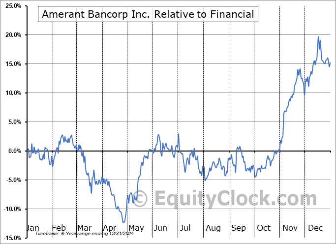 The seasonal timeframe is Inline with the period of seasonal strength for the Financial sector, which runs from November 22 to April 13. The seasonal chart for the broad sector is available via the following link: Financial Sector Seasonal Chart.