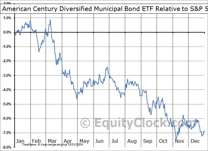 Analysis of the American Century Diversified Municipal Bond ETF (AMEX:TAXF) seasonal charts above shows that a Buy Date of November 11 and a Sell Date of March 16 has resulted in a geometric average return of 1.93% above the benchmark rate of the S&P 500 Total Return Index over the past 6 years. This seasonal timeframe has shown positive results compared to the benchmark in 4 of those periods. This is a good rate of success and the return strongly outperforms the relative buy-and-hold performance of the stock over the past 6 years by an average of 14.7% per year.
