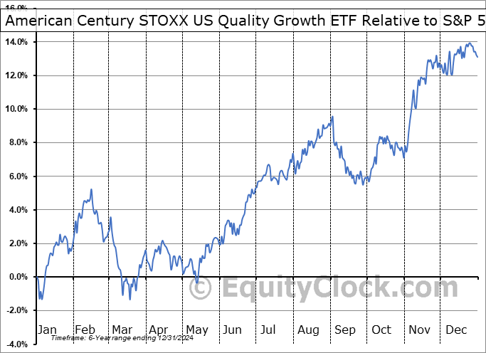 Analysis of the American Century STOXX US Quality Growth ETF (AMEX:QGRO) seasonal charts above shows that a Buy Date of June 9 and a Sell Date of August 31 has resulted in a geometric average return of 2.38% above the benchmark rate of the S&P 500 Total Return Index over the past 6 years. This seasonal timeframe has shown positive results compared to the benchmark in 6 of those periods. This is an excellent rate of success, but the return underperforms the relative buy-and-hold performance of the stock over the past 6 years by an average of 0.49% per year.