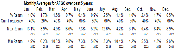 A word of caution: Only 5 years of data is available for shares of AFGC, perhaps insufficient to create a seasonal profile that accurately gauges the seasonal tendencies influencing the investment. Ideally, while 20 years is preferred, at least 10 years of data is required to perform a seasonal analysis that is considered to be reliable for future seasonal periods.