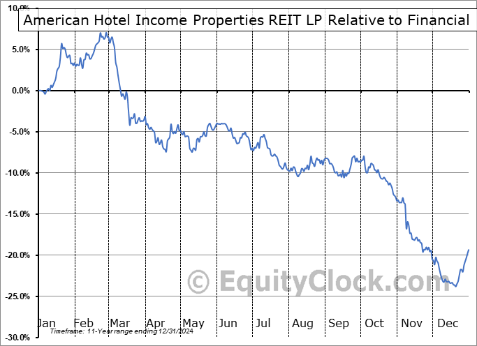 Analysis of the American Hotel Income Properties REIT LP (TSE:HOT/UN.TO) seasonal charts above shows that a Buy Date of December 9 and a Sell Date of February 27 has resulted in a geometric average return of 8.53% above the benchmark rate of the S&P 500 Total Return Index over the past 11 years. This seasonal timeframe has shown positive results compared to the benchmark in 10 of those periods. This is an excellent rate of success and the return strongly outperforms the relative buy-and-hold performance of the stock over the past 11 years by an average of 36.45% per year.