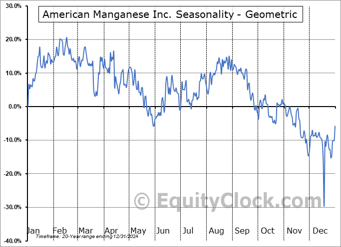 American Manganese Inc. (OTCMKT:AMYZF) Seasonal Chart