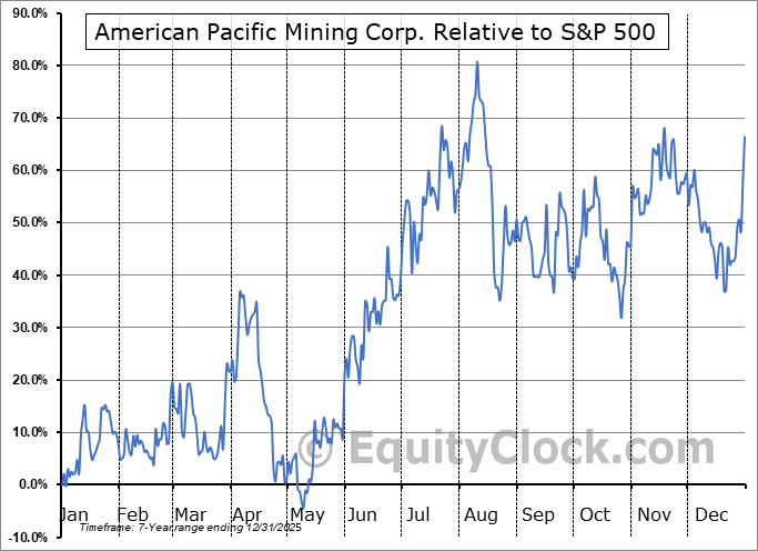 Analysis of the American Pacific Mining Corp. (OTCMKT:USGDF) seasonal charts above shows that a Buy Date of October 8 and a Sell Date of January 13 has resulted in a geometric average return of 12.58% above the benchmark rate of the S&P 500 Total Return Index over the past 6 years. This seasonal timeframe has shown positive results compared to the benchmark in 5 of those periods. This is a very good rate of success and the return strongly outperforms the relative buy-and-hold performance of the stock over the past 6 years by an average of 28.76% per year.