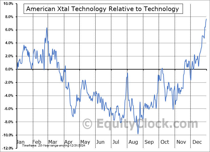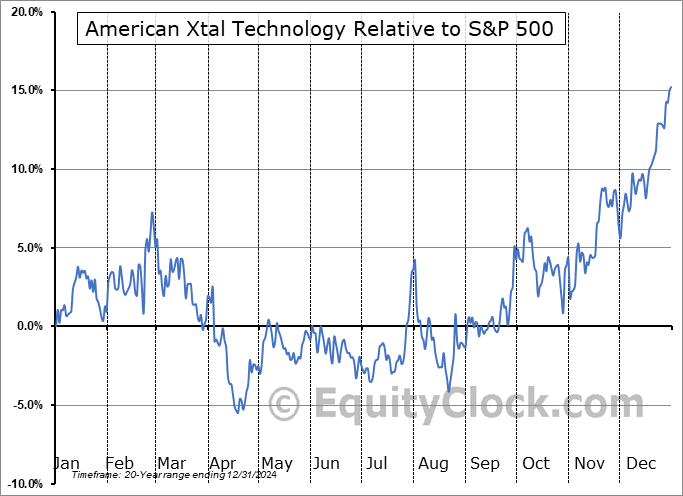 Analysis of the American Xtal Technology (NASD:AXTI) seasonal charts above shows that a Buy Date of October 30 and a Sell Date of January 31 has resulted in a geometric average return of 5.39% above the benchmark rate of the S&P 500 Total Return Index over the past 20 years. This seasonal timeframe has shown positive results compared to the benchmark in 15 of those periods. This is a good rate of success and the return strongly outperforms the relative buy-and-hold performance of the stock over the past 20 years by an average of 12.47% per year.