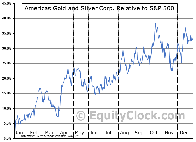 Analysis of the Americas Silver Corp. (TSE:USA.TO) seasonal charts above shows that a Buy Date of December 12 and a Sell Date of May 9 has resulted in a geometric average return of 6.59% above the benchmark rate of the S&P 500 Total Return Index over the past 20 years. This seasonal timeframe has shown positive results compared to the benchmark in 14 of those periods. This is a good rate of success and the return strongly outperforms the relative buy-and-hold performance of the stock over the past 20 years by an average of 29.1% per year.