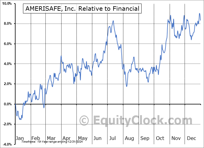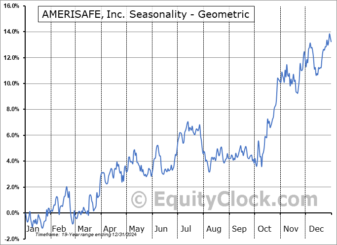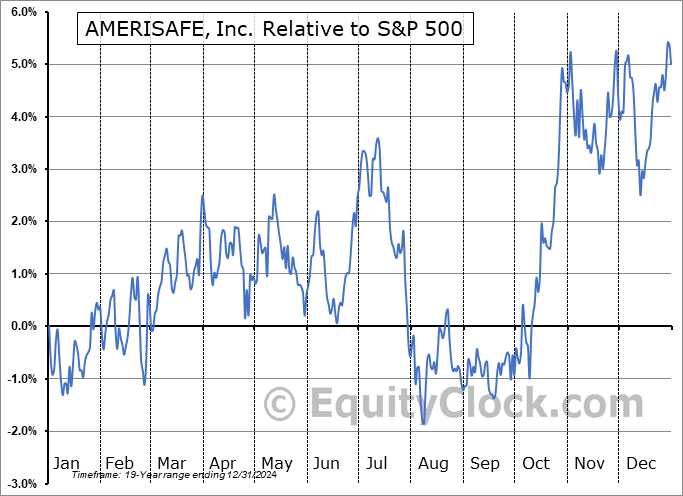 Analysis of the AMERISAFE, Inc. (NASD:AMSF) seasonal charts above shows that a Buy Date of August 8 and a Sell Date of October 30 has resulted in a geometric average return of 6.09% above the benchmark rate of the S&P 500 Total Return Index over the past 19 years. This seasonal timeframe has shown positive results compared to the benchmark in 16 of those periods. This is a very good rate of success and the return strongly outperforms the relative buy-and-hold performance of the stock over the past 19 years by an average of 3.54% per year.