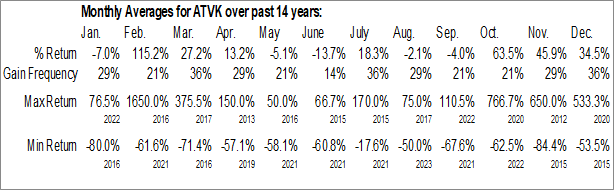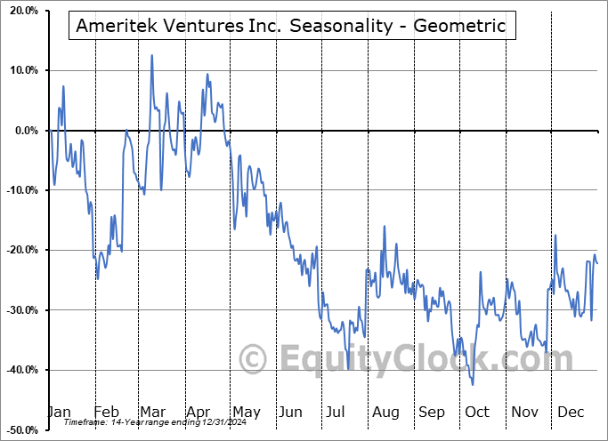 Ameritek Ventures Inc. (OTCMKT:ATVK) Seasonal Chart
