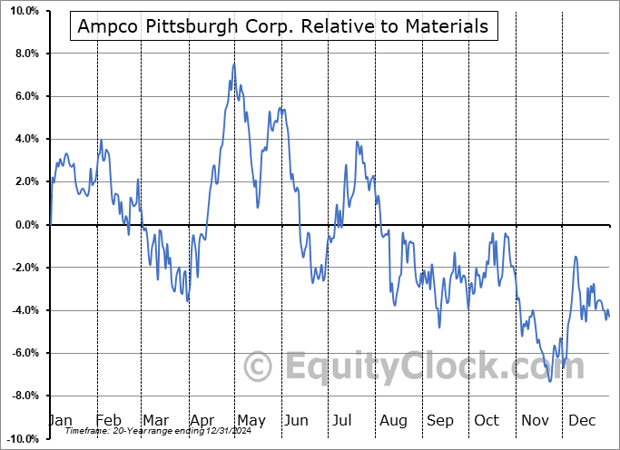 Analysis of the Ampco Pittsburgh Corp. (NYSE:AP) seasonal charts above shows that a Buy Date of February 10 and a Sell Date of April 30 has resulted in a geometric average return of 4.8% above the benchmark rate of the S&P 500 Total Return Index over the past 20 years. This seasonal timeframe has shown positive results compared to the benchmark in 11 of those periods. This is a fair rate of success and the return strongly outperforms the relative buy-and-hold performance of the stock over the past 20 years by an average of 21% per year.