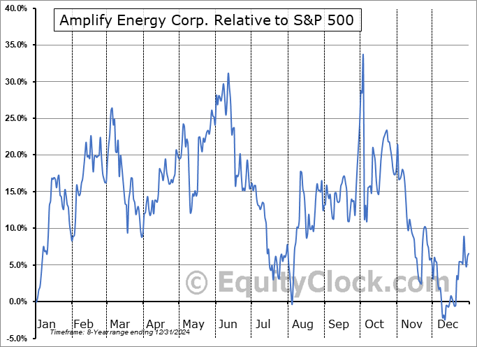 Analysis of the Amplify Energy Corp. (NYSE:AMPY) seasonal charts above shows that a Buy Date of October 4 and a Sell Date of January 16 has resulted in a geometric average return of 14.85% above the benchmark rate of the S&P 500 Total Return Index over the past 8 years. This seasonal timeframe has shown positive results compared to the benchmark in 6 of those periods. This is a good rate of success and the return strongly outperforms the relative buy-and-hold performance of the stock over the past 8 years by an average of 38.51% per year.