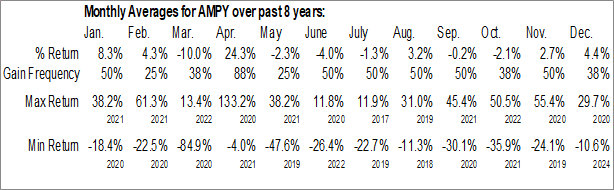 A word of caution: Only 8 years of data is available for shares of AMPY, perhaps insufficient to create a seasonal profile that accurately gauges the seasonal tendencies influencing the investment. Ideally, while 20 years is preferred, at least 10 years of data is required to perform a seasonal analysis that is considered to be reliable for future seasonal periods.