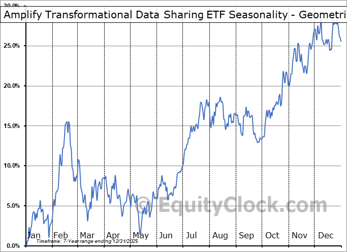 Amplify Transformational Data Sharing ETF (AMEX:BLOK) Seasonal Chart