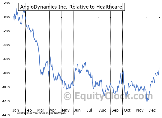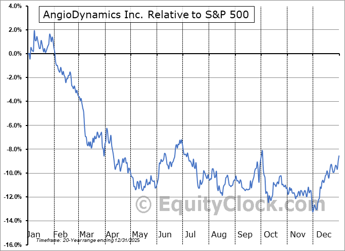 Analysis of the AngioDynamics Inc. (NASD:ANGO) seasonal charts above shows that a Buy Date of October 28 and a Sell Date of January 21 has resulted in a geometric average return of 3.48% above the benchmark rate of the S&P 500 Total Return Index over the past 20 years. This seasonal timeframe has shown positive results compared to the benchmark in 14 of those periods. This is a good rate of success and the return strongly outperforms the relative buy-and-hold performance of the stock over the past 20 years by an average of 16.36% per year.
