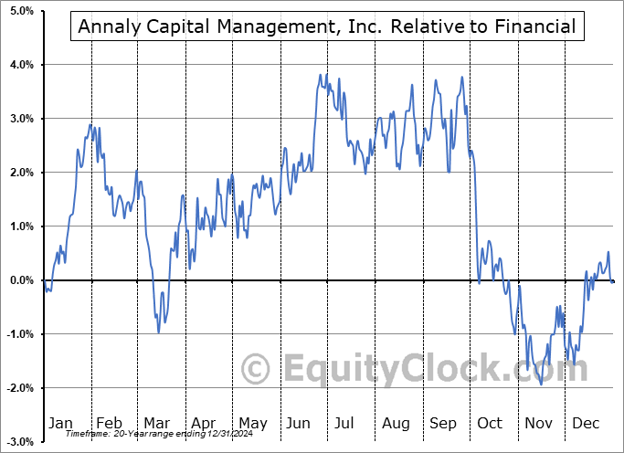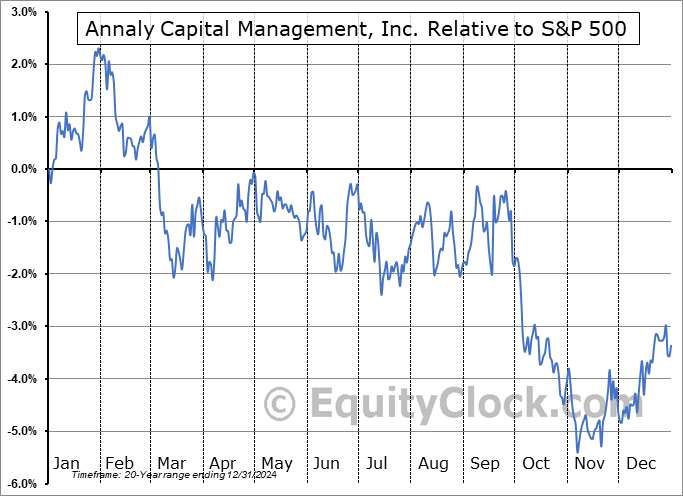 Analysis of the Annaly Capital Management, Inc. (NYSE:NLY) seasonal charts above shows that a Buy Date of March 19 and a Sell Date of June 8 has resulted in a geometric average return of 1.05% above the benchmark rate of the S&P 500 Total Return Index over the past 20 years. This seasonal timeframe has shown positive results compared to the benchmark in 15 of those periods. This is a good rate of success and the return strongly outperforms the relative buy-and-hold performance of the stock over the past 20 years by an average of 6.2% per year.
