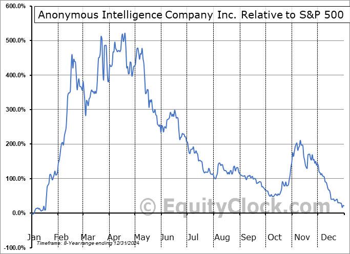 Analysis of the Anonymous Intelligence Company Inc. (CSE:ANON.CA) seasonal charts above shows that a Buy Date of October 5 and a Sell Date of February 3 has resulted in a geometric average return of 17.06% above the benchmark rate of the S&P 500 Total Return Index over the past 8 years. This seasonal timeframe has shown positive results compared to the benchmark in 5 of those periods. This is a fair rate of success and the return strongly outperforms the relative buy-and-hold performance of the stock over the past 8 years by an average of 59.65% per year.
