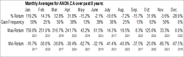 Anonymous Intelligence Company Inc. (CSE:ANON.CA) Seasonal Chart
