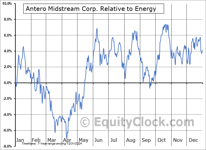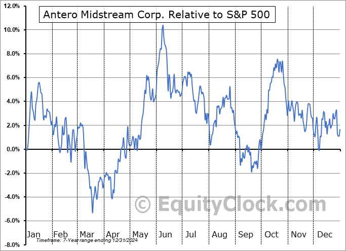 Analysis of the Antero Midstream Corp. (NYSE:AM) seasonal charts above shows that a Buy Date of March 18 and a Sell Date of June 8 has resulted in a geometric average return of 21.14% above the benchmark rate of the S&P 500 Total Return Index over the past 7 years. This seasonal timeframe has shown positive results compared to the benchmark in 6 of those periods. This is a very good rate of success and the return strongly outperforms the relative buy-and-hold performance of the stock over the past 7 years by an average of 27.8% per year.